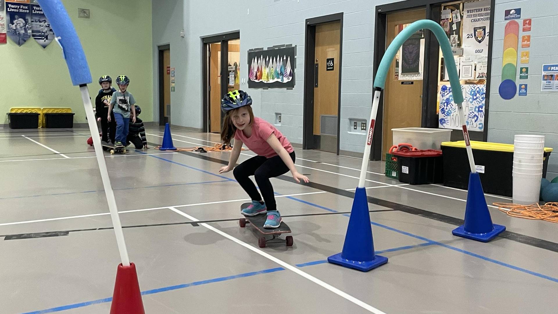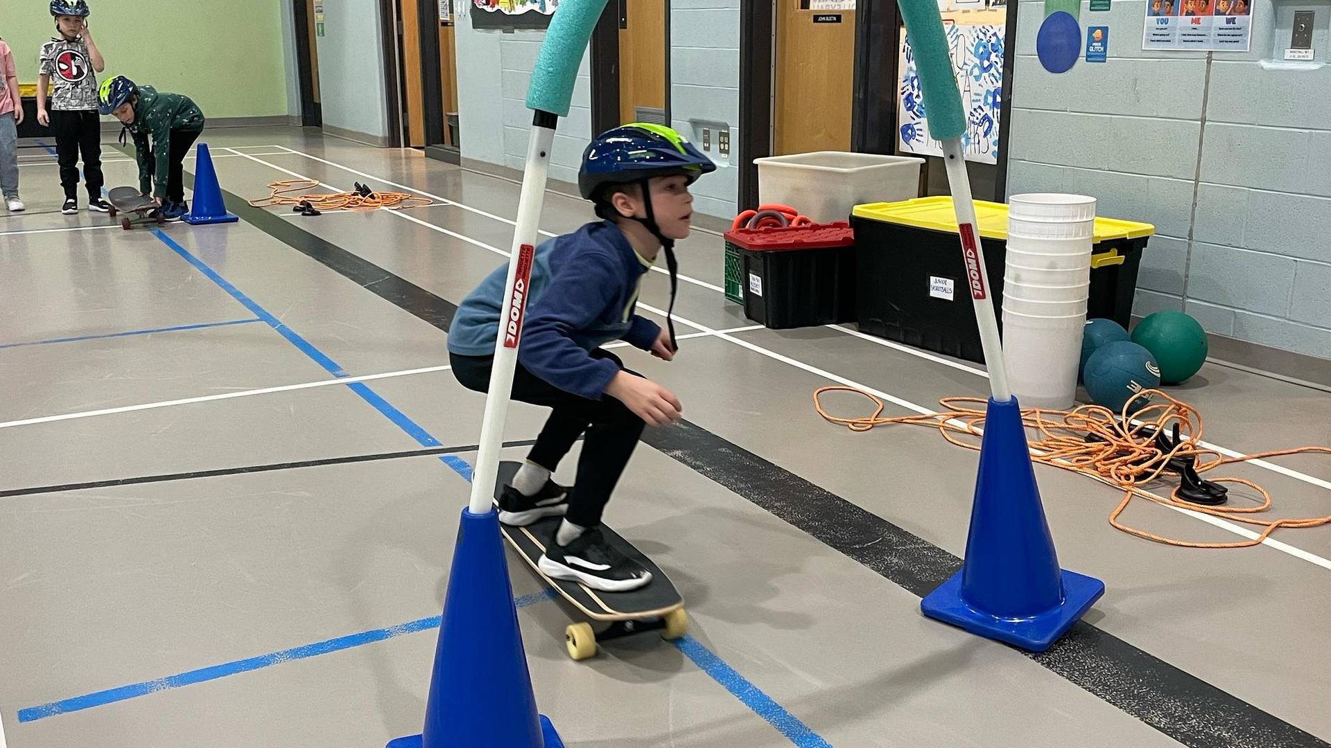 My grade two students are currently learning about ride skills (i.e. object locomotor skills), balance concepts, and skateboarding in PE class!